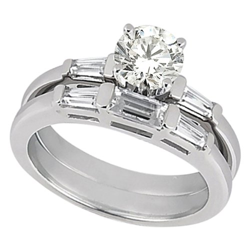 Allurez - Conique Bague De Fiançailles Baguette Diamond Et Wedding Band 14k Or Blanc (1,02 Ct)