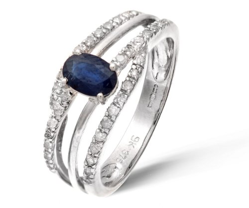 Bague Femme - Or blanc (9 carats) - Saphir - Diamant 0.6 Cts
