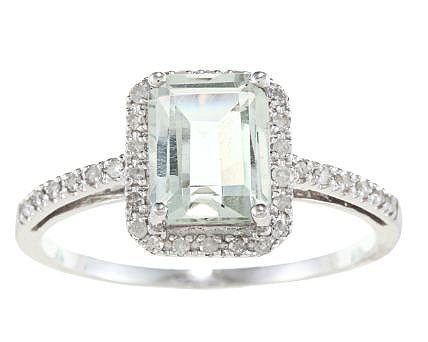 Bague en diamants et en Or blanc 10k avec une améthyste verte taille émeraude (1/5 ct): Amazon.fr: Bijoux