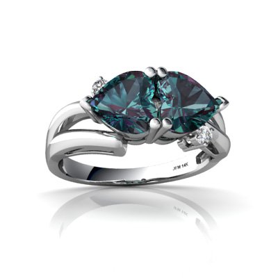 Cette bague dispose deux 6mm cœur centre alexandrites, accentués par 2 étincelant diamants. Le poids total des pierres est2 carats en or 585/1000 solide.