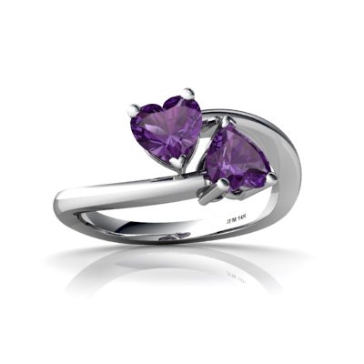 Cette bague dispose deux 5mm cœur centre amethystes. Le poids total des pierres est1 carats en or 585/1000 solide.
