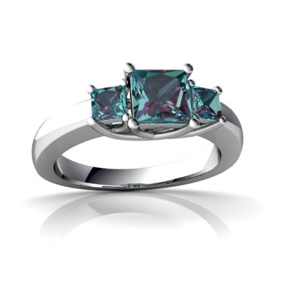 Cette bague dispose a 5mm princesse centre alexandrite avec deux 3mm princessealexandrites secondaires Le poids total des pierres est1.2 carats en or 585/1000 solide.