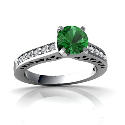 Bague Princesse des curs - Bague Emeraude et diamants Or Blanc - Solitaire Emeraude rond serti 4 griffes - 0,38 carat - 3549