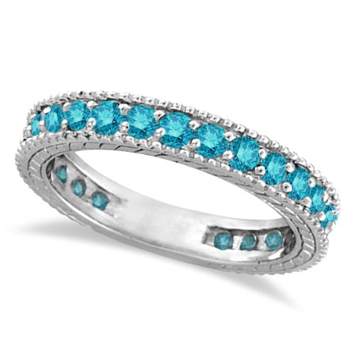 Vingt-Quatre diamants bleus. un total de un carat. entourent ce magnifique blanc 14 carats D'or jonc éternité.