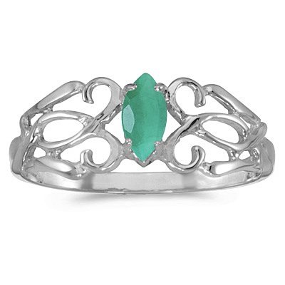 Cet or blanc 14k anneau filigrane dispose D'un 6x3 mm Emeraude véritable marquise naturel avec un poids ct 0.30 Total.