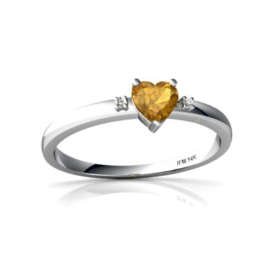 Cette bague dispose a 4mm cœur centre citrine, accentués par 2 étincelant diamants. Le poids total des pierres est0.3 carats en or 585/1000 solide.
