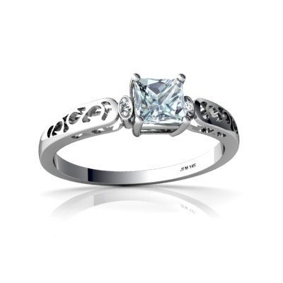 Cette bague dispose a 4mm princesse centre aigue-marine, accentués par 2 étincelant diamants. Le poids total des pierres est0.4 carats en or 585/1000 solide.