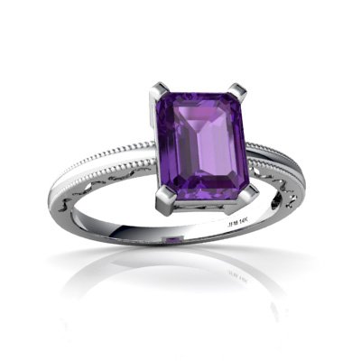 Cette bague dispose a 8X6mm rectangulaire centre amethyste. Le poids total des pierres est1.8 carats en or 585/1000 solide.