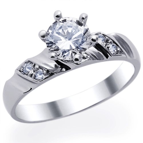 14 ct White Gold Engagement Ring 1ctw CZ Cubic Zirconia Round Solitaire Up Down Shank Ring