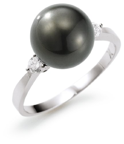 Perldor - T 60650166 - Bague Femme - Argent 925/1000 - Perle de Tahiti - Vert Adriana - N14 - Bague Femme - Or Blanc 585/1000 (14 cts) - Diamant - Perles de culture
