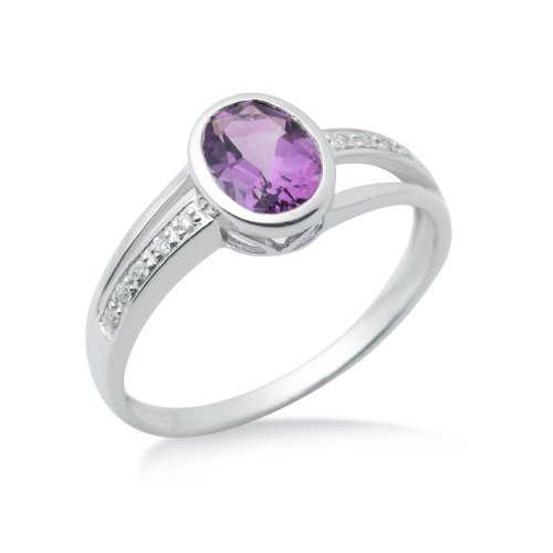 Miore - MG9013RO - Bague Femme - Or blanc 375/1000 (9 ct) 1.61 gr - Améthyste - Diamant 0.05 cts - T 54