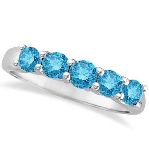 Cette fantaisie cinq anneaux de pierre pour les femmes dispose de 5 diamants bleus naturels élégamment situé dans un mousseux et de fantaisie en or blanc 14kt partagée broches de réglage.