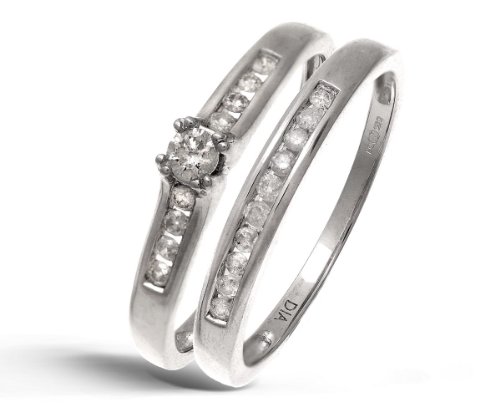 Ensemble Bague de fiançailles et alliance Femme - Or Blanc 375/1000 (9 Cts) 2.5 Gr - Diamant - T 49: Amazon.fr: Bijoux