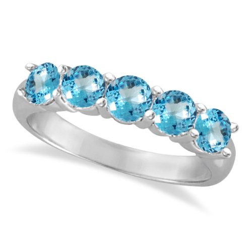 Cette magnifique pierre précieuse 5 anneaux de pierre pour les femmes affiche 5 pierres topaze bleu gracieusement conA§ues dans un solide 14kt or blanc partagé broches de réglage.