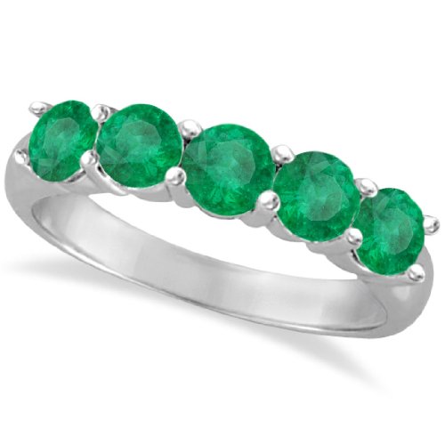 5 pierres D'émeraude A couper le souffle sont affichés dans cette bague pierre précieuse élégante pour les dames. Les émeraudes sont magnifiquement mis dans un solide 14kt or blanc partagé broches de réglage qui accentue les gemmes vertes élégantes.