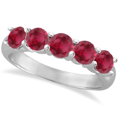 Cette bague rubis pierre A couper le souffle cinq pour les femmes affiche 5 rubis gracieusement conA§ues dans un solide 14kt or blanc partagé broches de réglage.