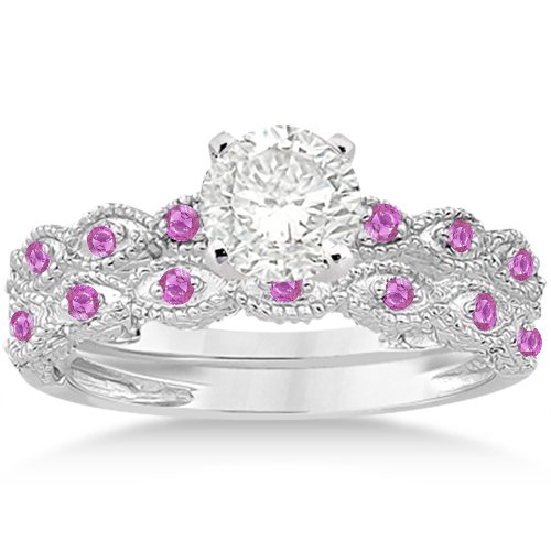 Cette bague de fianA§ailles en diamant non-correspondance avec la bande de mariage est fabriqué en or blanc 14 carats. Un total de 16 brillants saphirs roses situé dans un cadre pavé ornent l'.ensemble de mariée.