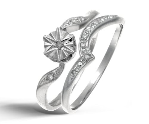 Bijou Ensemble Bague de fiançailles et alliance Femme - Or Blanc 375/1000 (9 Cts) 3.9 Gr - Diamant - T 50 (477 ) . Réductions, promotions, offres spéciales pour