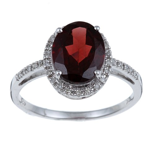 grenat ovale et diamant (1/10 ct) en Or blanc 10k