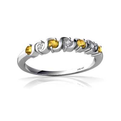 Cette bague dispose quatre 2mm rond centre citrines, accentués par 3 étincelant diamants. Le poids total des pierres est0.2 carats en or 585/1000 solide.