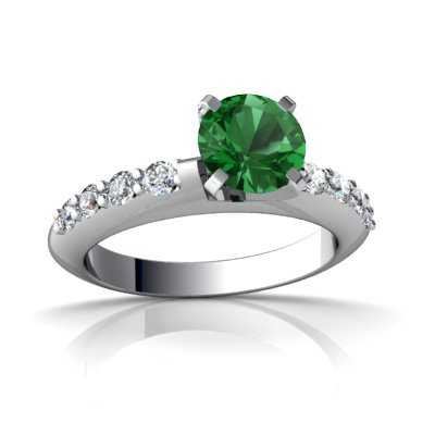 Bague Princesse des curs - Bague Emeraude et diamants Or Blanc - Solitaire Emeraude rond serti 4 griffes - 0,38 carat - 3549