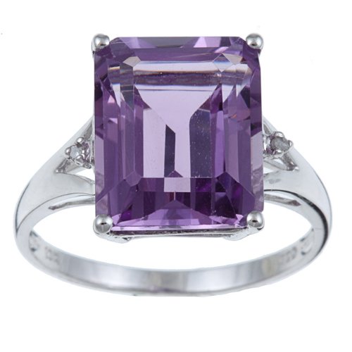 taille émeraude améthyste et bague en diamants en Or blanc 10k