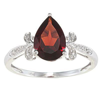 Bague en diamant et en Or blanc 10k avec un Grenat en forme de poire (1/10 ct) (Offre de Designer Diamonds NY)