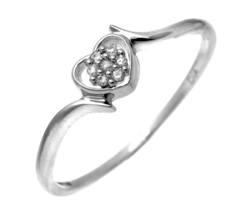 Bague Femme - Coeur - Or blanc (9 Cts) 0.9 Gr - Diamant 0.004 Cts - T 52