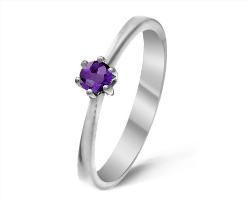 Bague Femme Solitaire Fiancailles Or Blanc 375/1000 avec Améthyste 0.20 Carat Taille 56