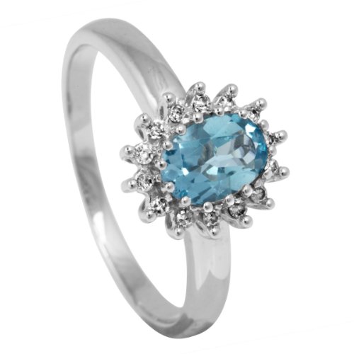 Bella Donna - 656611 - Bague Femme - Or blanc 375/1000 (9 cts) 2.9 Gr - topaze bleue - T 58