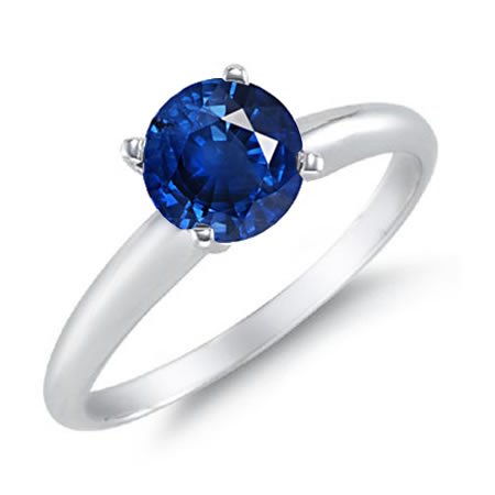 Femme Bague Or Blanc 585/1000 Saphir Bleu 1 Karat T54: Vir