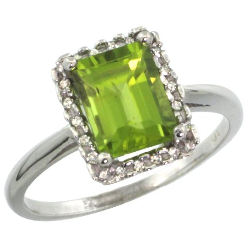 Bague de fiançailles halo en diamant taille émeraude en Or blanc 14 (9 cts) 3.08 Gr - Peridot - Diamant 0.965 Ct Bague Femme - Or Blanc 375/1000 (9 carats)