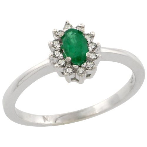 Revoni - Bague Femme - Or blanc 585/1000 (14 carats) Or blanc 585/1000 (14 carats) - Diamants et plus. Emeraude ovale 0,25 ct - T62. Allurez