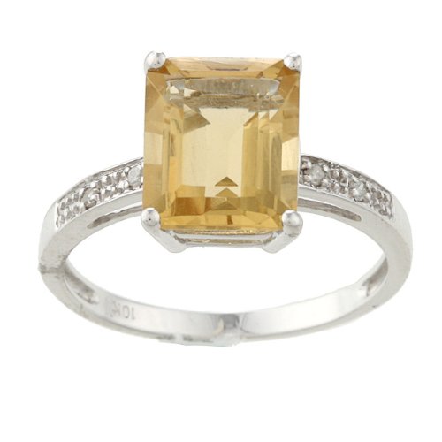 taille émeraude citrine et bague en diamants en or blanc 10k